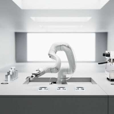 E0509, Doosan'ın yiyecek ve içecek üretimine yönelik cobot'udur. IP66 korumasına ve NSF sertifikasına sahip olduğundan temiz ortamlara uygundur. Tasarım temizliği kolaylaştırır ve insanların yanında çalışması güvenlidir.